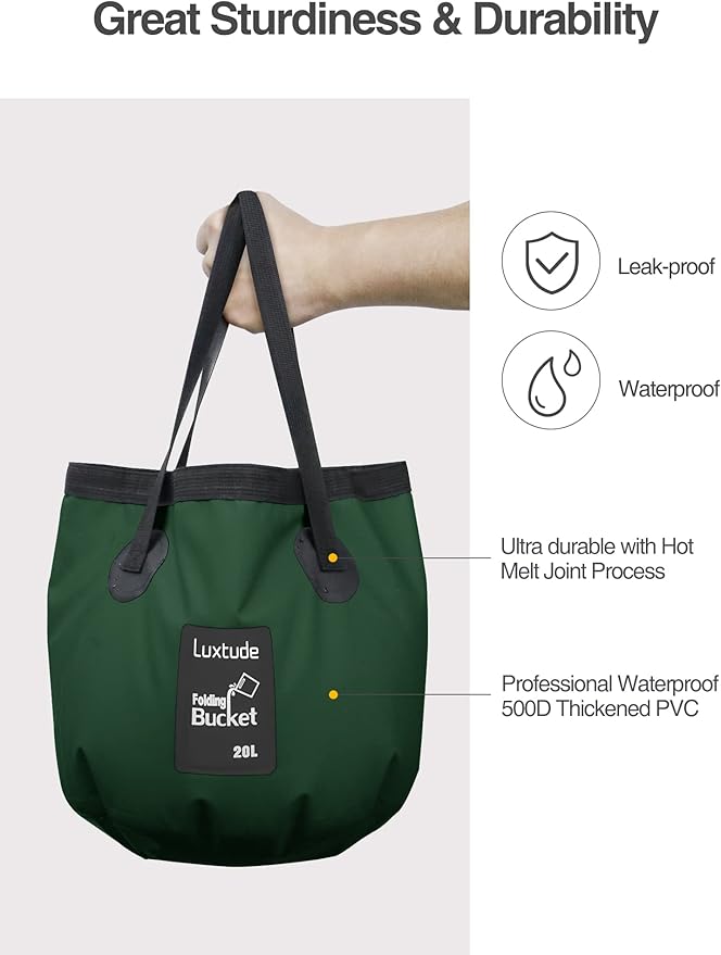 - ❤ LARGE CAPACITY: Capacity - 5 Gallon bucket (20L) can meet your outdoor daily use. Easy to use and dry quickly with using high-quality fabric.