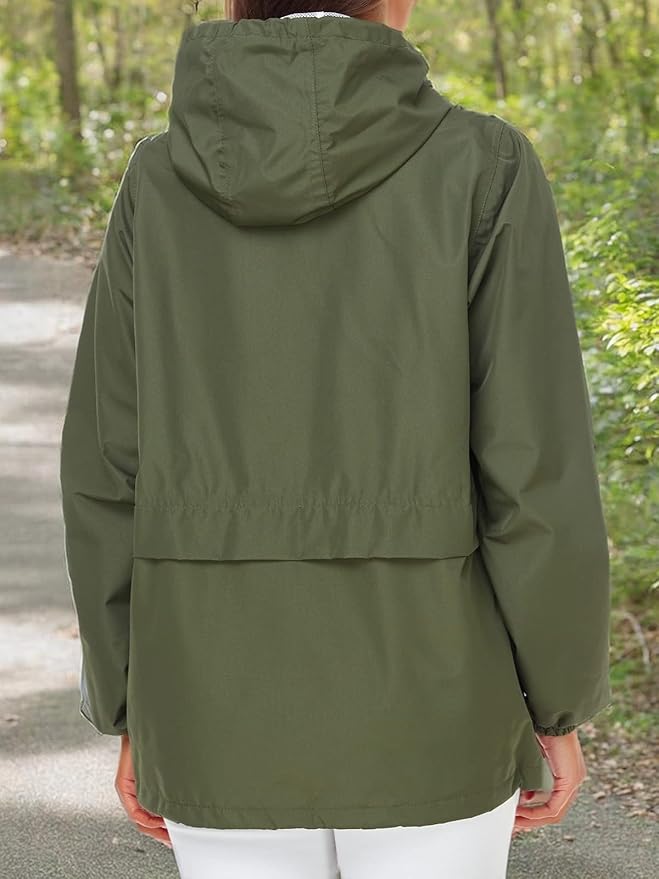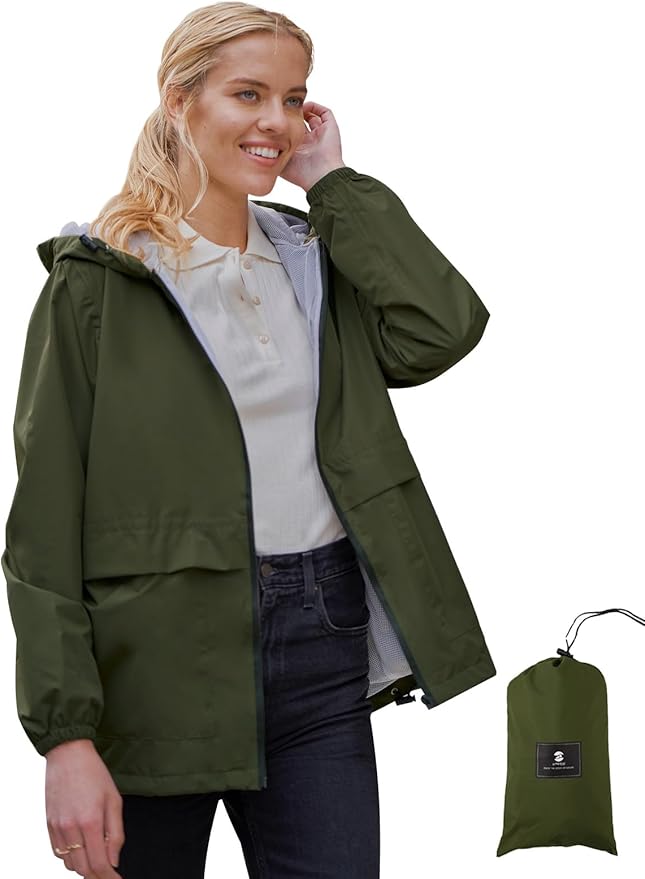SaphiRose Lightweight Rain Jacket Women Waterproof Breathable Raincoat Packable Hooded Windbreaker