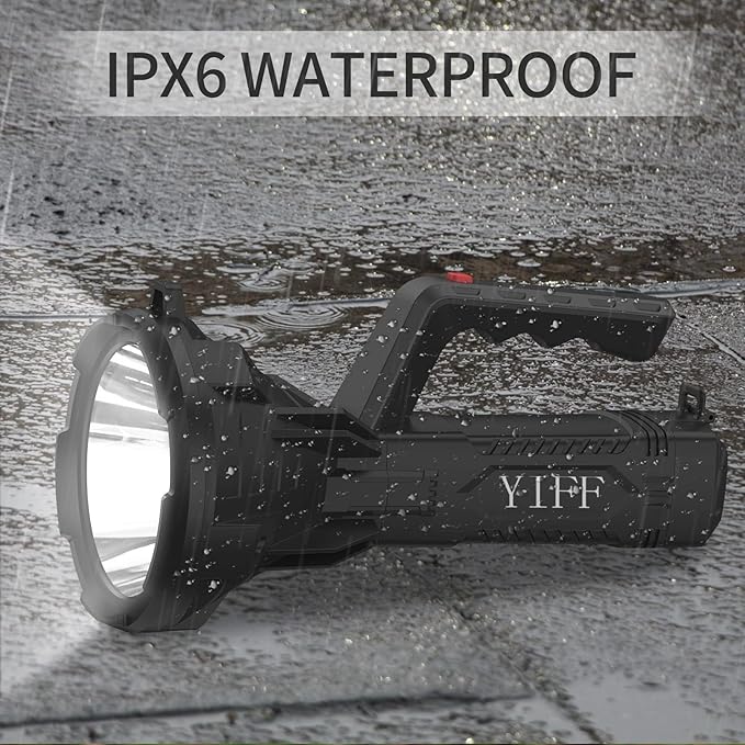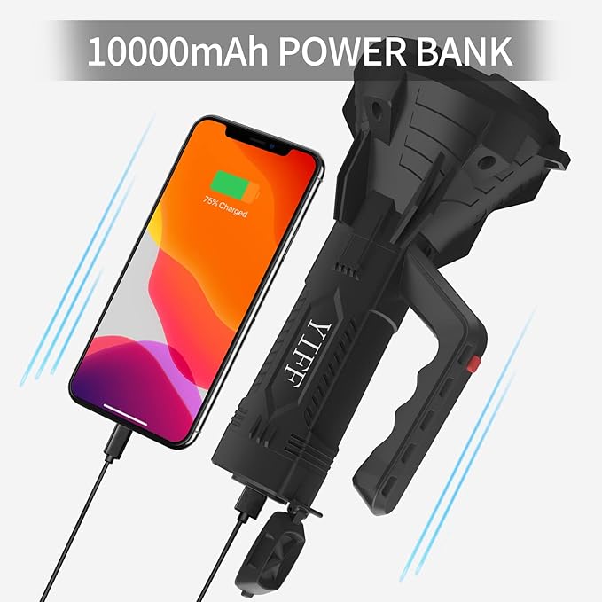 6000 High Lumen LED Spotlight with 20Hrs Ultra-Long Running & 10000mAh Power Bank, IP66 Waterproof Spot Lights Outdoor Handheld for Boating, Hunting, Fishing, Camping