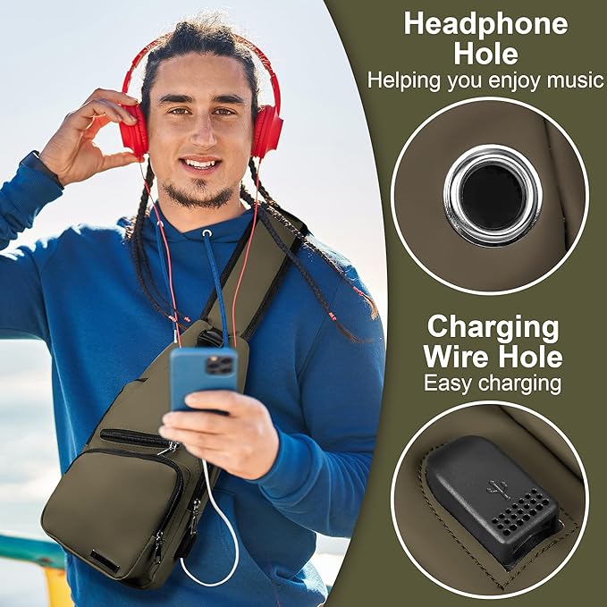 - 【USB Charger Port & Headphone Hole】Cross body bag with USB Charging Port & Headphone Hole(without portable USB charging cable), you may charge your mobile phone with the USB charging port and enjoy music easily. A Mobile Phone Pocket in shoulder strap makes you convenient for charging and listening while walking.