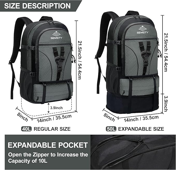 - Unique Design Backpack: Hiking backpack in expandable version. Large capacity & lightweight hiking daypack. Before extension:14 x 8 x 21.5 inch (40 L). After extension:14 x 8 x 25.5 inch (50 L)