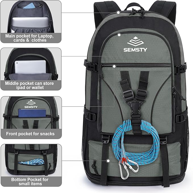 - Expandable & Extra Large Capacity: This hiking daypack can be expanded by using the zipper at the bottom(from 40 l to 45 l). Roomy enough for a CARRY ON. The side buckles makes your stuffs safe and makes the backpack not too bugling even it's fully packed. Multi-compartments help you organize all your essentials like clothes, camping supplies, gears, etc. Perfect for outdoor activities