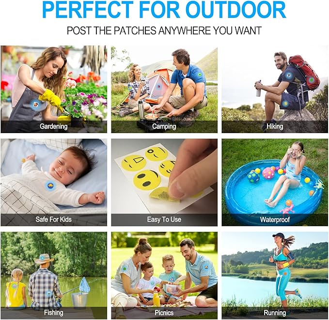 - Easy to Use: You just stick the mosquito repellent patches on hat, cloth, pant, sock, shoe, bag, cup, table, sofa, stroller, toy, tent and anywhere you want. Protect you from mosquitoes in all aspects!