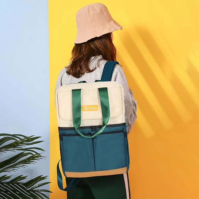 - 👜Stylish Appearance and Ideal Gift:Our Convertible insulated cooler backpack can use it as a chic tote, a hands-free backpack, making it super versatile! Arrive in style—back trolley sleeve for easily sliding over your luggage/suitcase handles, dual padded shoulder straps provide optimum comfort. With this stylish beach cooler backpack, you will get a lot of compliments. Moreover, It's a great gift idea for women, perfect for lunch, picnic, work, travel, hiking, biking, park, beach and Disney.
