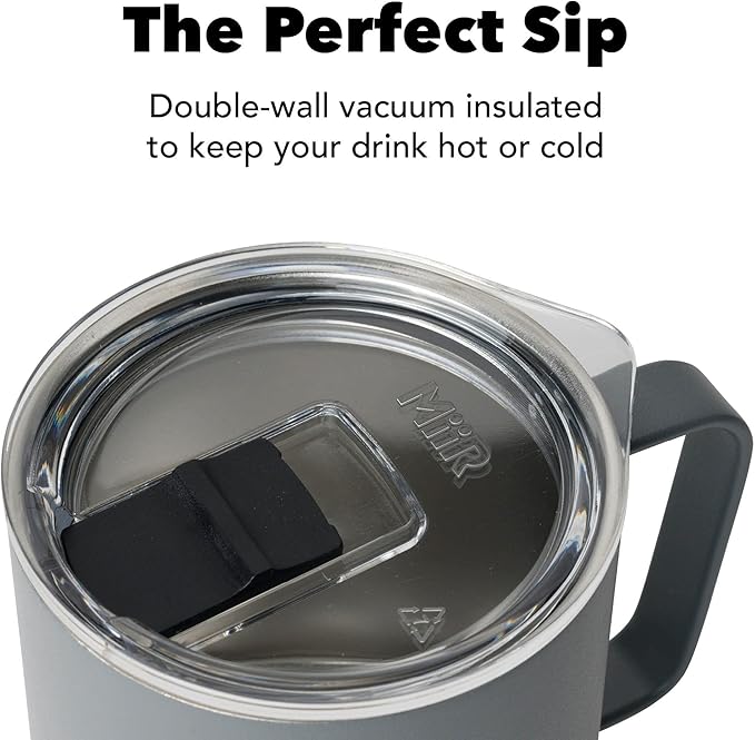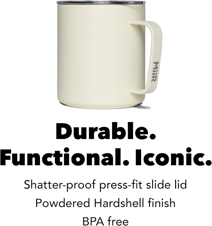 MiiR, Camp Cup, Vacuum Insulated, Splash Proof Press-Fit Slide Lid, Stainless Steel Construction, Sandstone White, 12 Oz