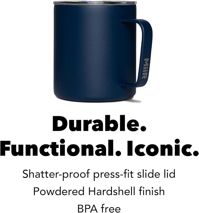 MiiR, Camp Cup, Vacuum Insulated, Splash Proof Press-Fit Slide Lid, Stainless Steel Construction, Tidal Blue, 12 Oz