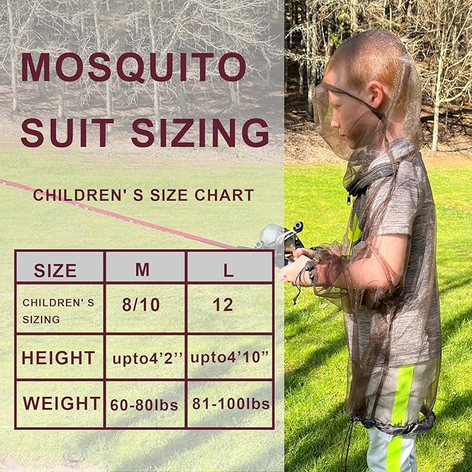 Aventik No-See-Um Mesh Youth Mosquito Jacket, Youth Mosquito Pants M&L Super Light, Keep Safe Cool, UV Protection