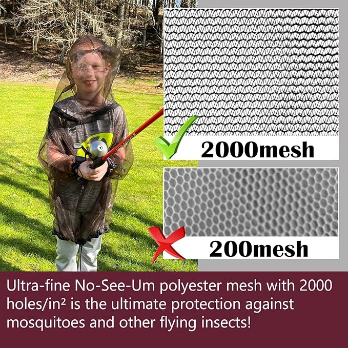 - Aventik super fine mesh with more than 2,000 holes per square inch youth mosquito jacket provides great protection from mosquito, bees, and other inserts. It also gives excellent UV protection in outdoor activities.