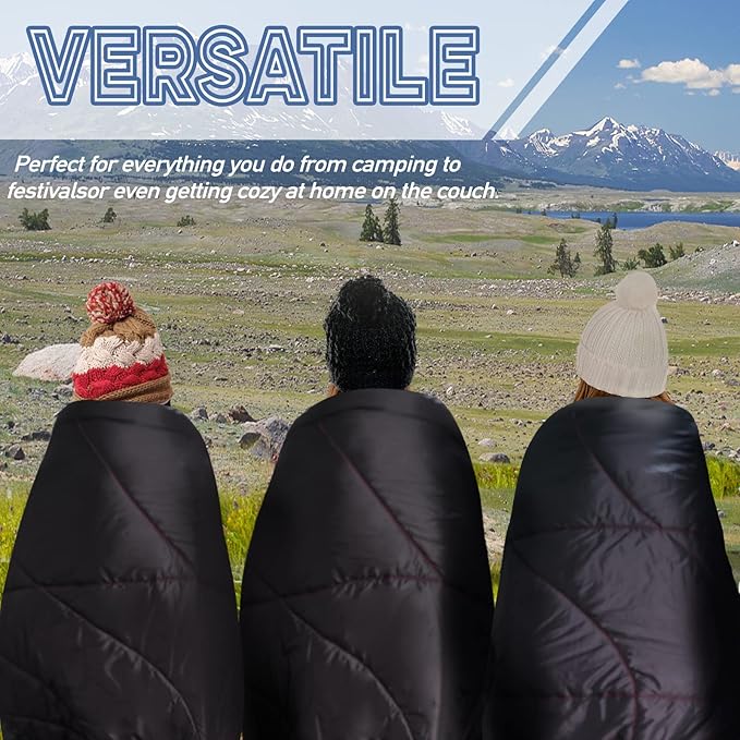 - 5.Shawl & Cover Foot: The one-person blanket is wearable! You can wear this puffy blanket when you are cooking foods, or drinking beer all while staying warm. When drinking coffee with your family in the garden, you can cover this puffy blanket to keep warm in the morning.