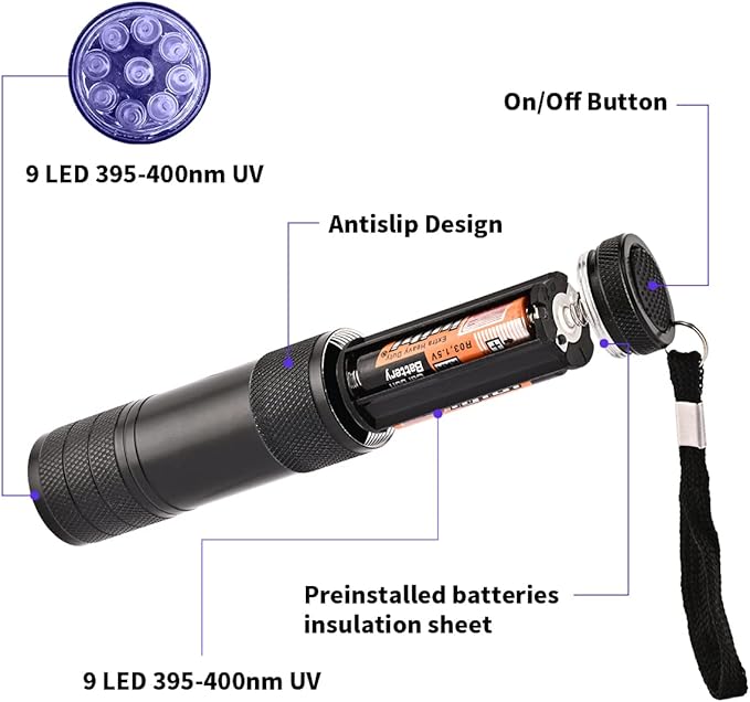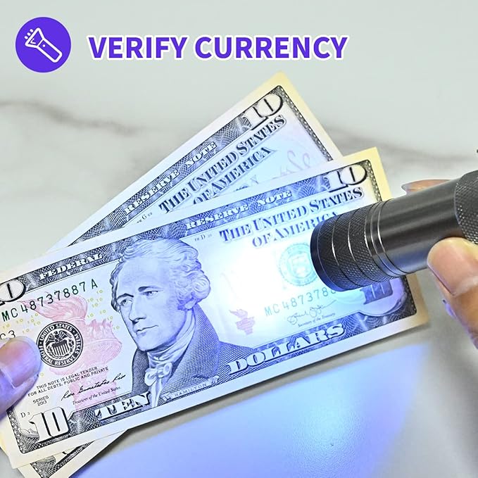 - 【Practicality】: The 395-401 band helps to more clearly detect food stains and pet urine stains, hair, and stains that are invisible to the naked eye. Perfect for easily verifying currency, driver's licenses, official ID cards, passports, and more.