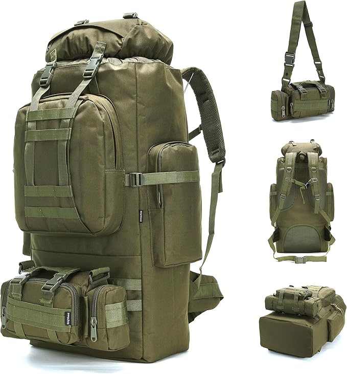 - 【Matching Belt Bag】: This tactical hiking backpack has an independent belt bag that can be used as a shoulder bag. this military rucksack backpack can store some items that need to be used at any time, such as water, mobile phones, sunscreen products, umbrellas, sunglasses, flashlights, etc., which will bring you great convenience and convenience.