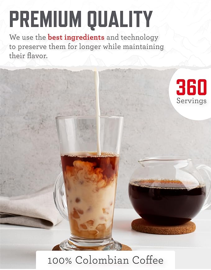 - 360 SERVINGS OF COFFEE BLISS: Enjoy 100% Colombian freeze-dried coffee, with 12 pouches, each holding 30 servings. Perfect for coffee enthusiasts!