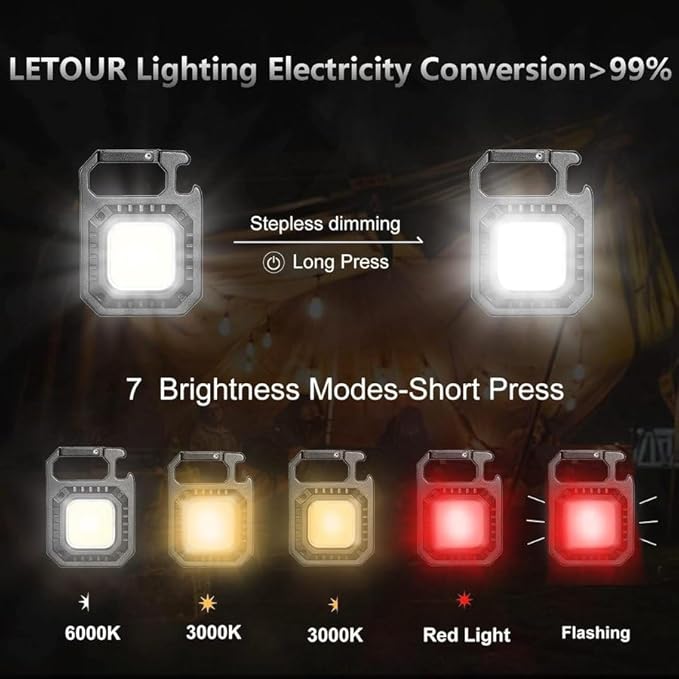 - 【Camping Accessories Gears Gear】:Spending A Night Outdoors Is Something Everyone Should Experience. So You Want Something To Help You See At Night.Letour Cob Keychain flashlight has a carabiner that can be easily attached to key ring or bags, it is waterproof,it's also a good bottle opener. You can use it for camping, walking the dog, looking for things, repairing.