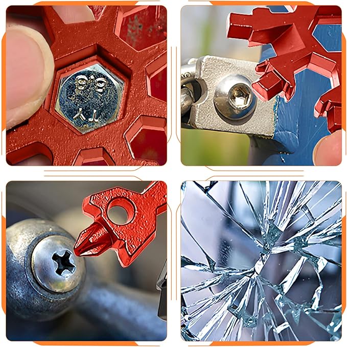 - 🔧【18 in 1 Snowflake Multi Tool】— The Snowflake Keychain Multitool has 18 functions:Bottle Opener, Box Cutter, Hex Wrench, Allen Wrench, Phillips screwdriver, Flathead screwdriver, etc. Small tools meets most of your life's needs and is always at your fingertips!
