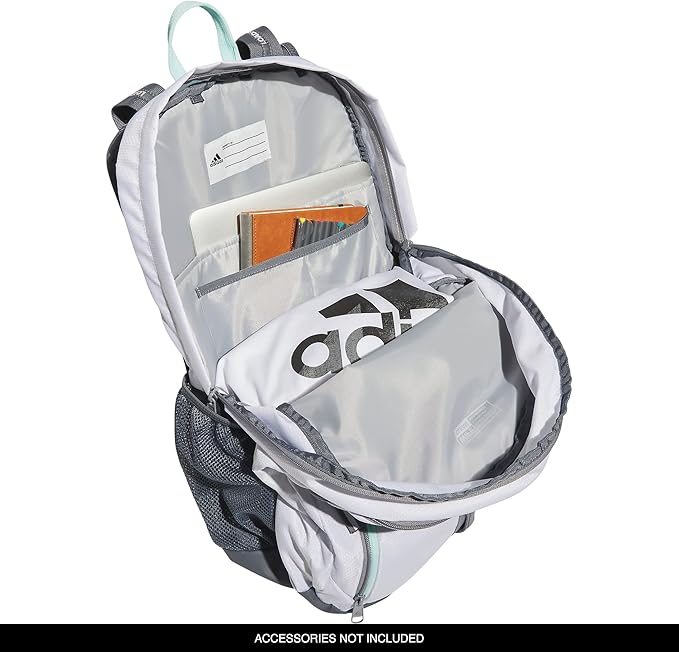 adidas Prime 6 Backpack, White/Orchid Fusion Purple/Semi Flash Aqua Blue, One Size