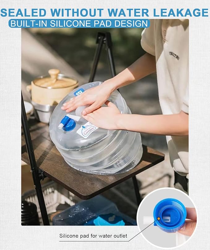 - Light & Compact & Portable & Reusable: This Design Is Lightweight, Compact, and Portable, Making It Easy to Store Thanks to Its Foldable and Space-Saving Features. It Remains Soft and Pliable Even in Cold Conditions While Retaining Its Shape, Making It Easy to Fill, Dry, Drain, and Reuse. Perfect for Outdoor Activities Such as RVing, Hunting, Dog Camping Gear, Camping Storage, Emergency Preparedness Items, Hiking, Backpacking, Fishing, Picnics, Survival Water, Barbecues, Camping Must-Haves.