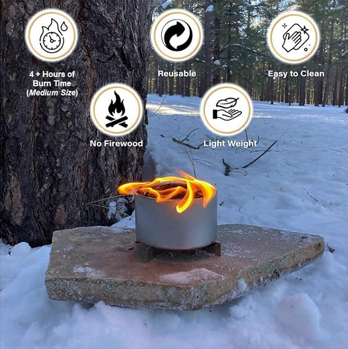 | Made in USA | Portable Mini Bonfire Campfire in a Can | Reusable & up to 5 Hours of Burn Time | Picnics Parties S'Mores Gifts Bushcraft Camping Survival Emergencies