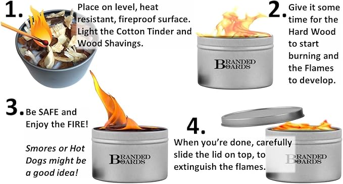 - Great for roasting marshmallows or making s'mores. Real Wood Campfire made with all natural non-toxic materials. Safe for cooking, easy to light and easy to put out (Just Slide The Lid On To Extinguish).