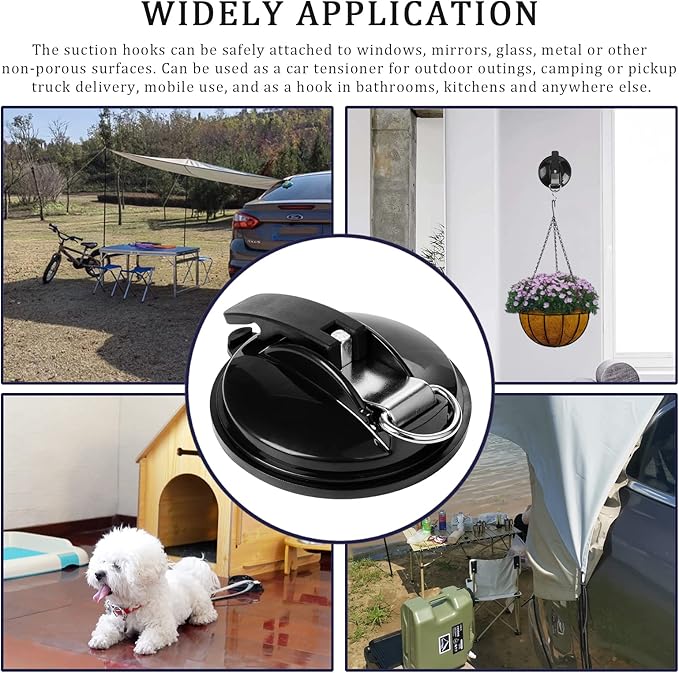 - 【Reusable】The waterproof vacuum suction hook can be washed with water and reused, convenient and practical. Works on smooth flat such as glass, vehicle, wood furniture, etc. No worries about scratching car surfaces or smooth walls.