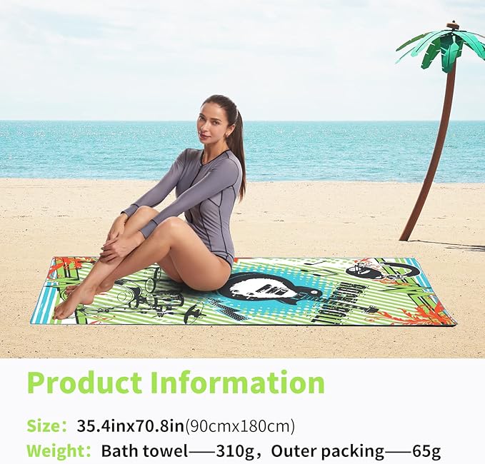 - ✔️【LIGHTWEIGHT AND SUPER SOFT】: No need to worry about your bag weighing too much when you travel with our microfiber beach towels, this beach towel only has about 0.66 LB. Soft as baby skin, it's perfect to use while traveling, exercising, swimming, bathing, camping, yoga, or simply dry up your face.