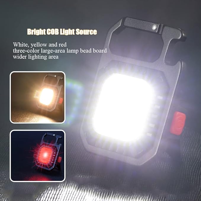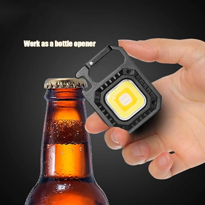 Mini LED Flashlight COB Rechargeable Keychain with 7 Light Modes Portable Pocket Light 500 Lumens Max with Folding Bracket Bottle Opener for Fishing Walking Camping (Type-1)