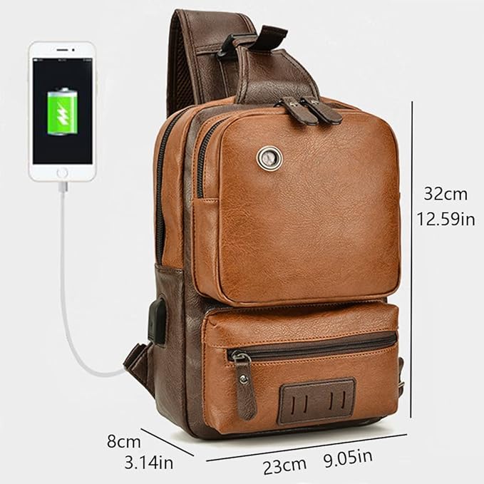 - 【Versatile & Spacious: 】: Size:23cm*8cm *32cm (9.05"*3.14"*12.59") ,Shoulder Strap: 120cm(47.24inch ) approx,Weight: 600g(21.16oz) approx, travel accessories, clothes, stationery, notebook.1 main zippered roomy compartment with 2 inner pockets.with external USB charging port (power bank not included),2x Front zippers Pocket , the bag can be used as a sling one shoulder bag, also as a backpack. perfect Gift for Christmas, New Year, Thanks Giving Day, Groomsmen, Birthdays, Father's Day.
