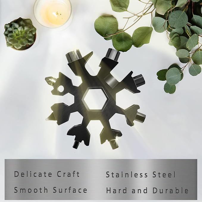 - 【PREMIUM MATERIAL】This snowflake tools 18-in-1 multi-tool is made of high quality carbon steel, exquisite workmanship, sturdy and durable, not easy to bend, rust, corrosion and so on. Every 18 in one snowflake multitool could ensure their long-term use.