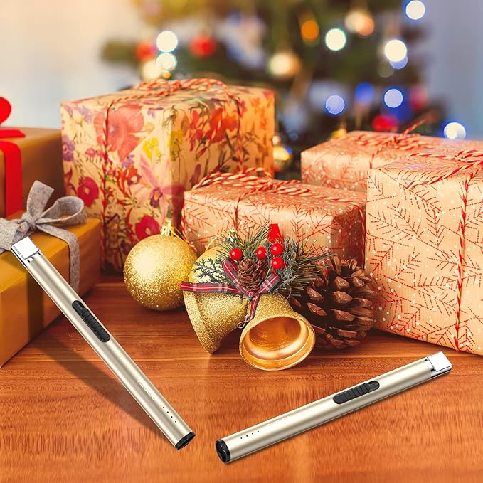 REIDEA Lighters 2 Pack S4 Pro Electric USB Rechargeable Safety Lock with LED Battery Indicator Flameless Windproof Arc Plasma Lighter for Candle, Fireworks (Champagne Gold)