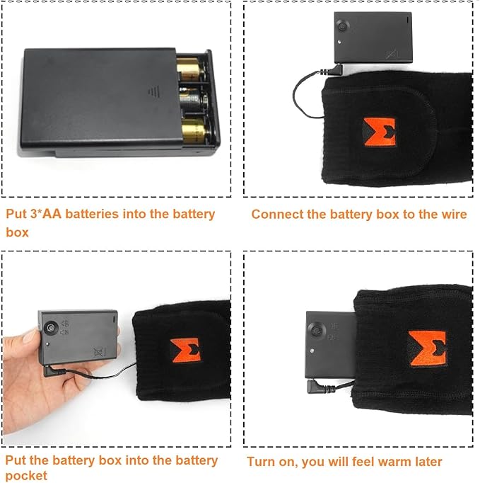 - 【Easy to Use】: It's very easy for you to use the heated socks. You just need to put 3*AA batteries into the battery box correctly, and press the ON/OFF, you will feel warm later. This is very friendly for elder people.