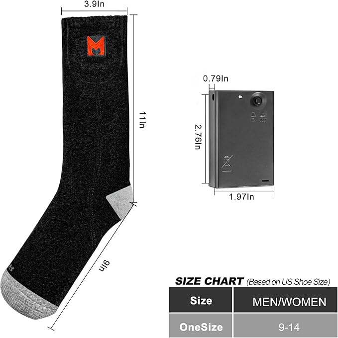 - 【Necessary for Winter】: With the electric heating socks, you can enjoy your fishing, camping, snowboarding, hunting, hiking, skiing, snowboard, and outdoor work, etc. The winter battery socks is a considerate gift for your parents, friends and family. One size for most people.
