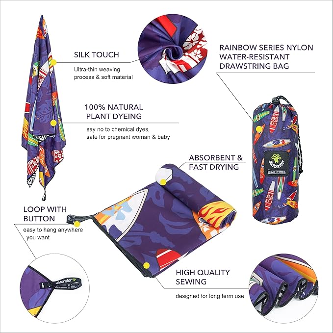 • 【100% Sand Free】Designed for beaches and camping,engineered to repel sand, ensuring that sand grains won't stick to the towel. After use, simply shake off the towel, and sand will easily fall off, making it hassle-free to clean.