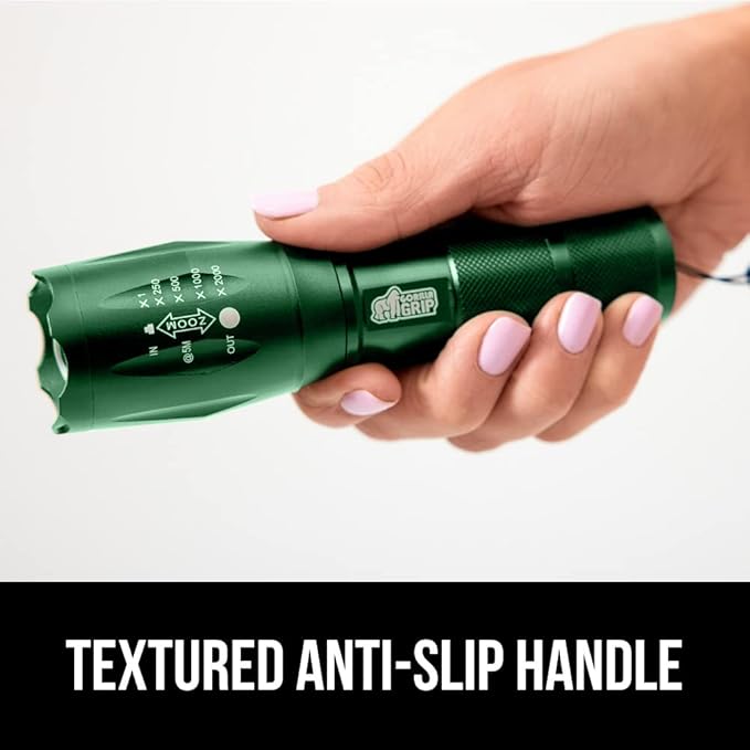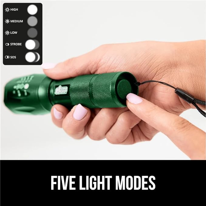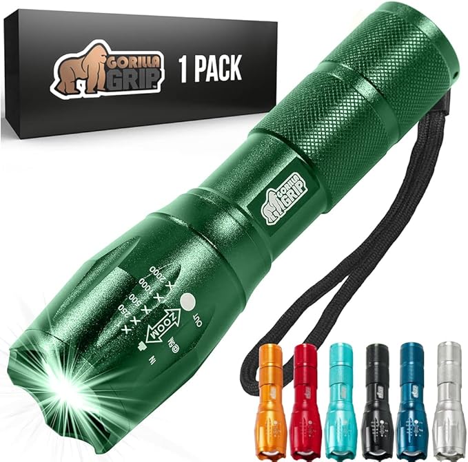 Gorilla Grip Powerful LED 750 FT Water Resistant 5 Adjustable Mode Tactical Flashlight, High Lumens Ultra Bright Battery Life Zoom Flashlights, Small Camping Car Mini Flash Light Accessories, Green