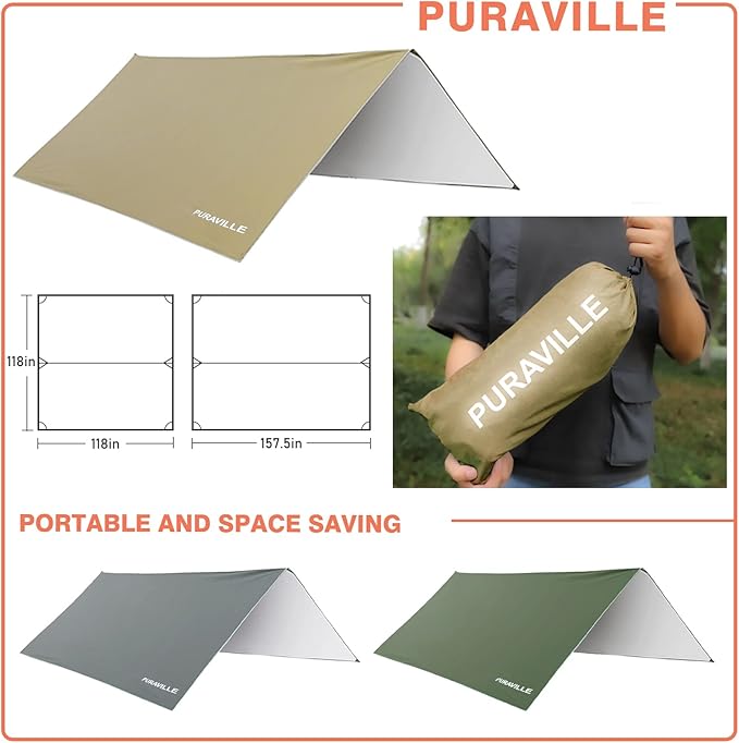 - A PERFECT SHELTER FOR OUTDOOR ADVENTURE: Are you struggling to pick the best backpacking tarp from a dazzling numbers of choices? Let Puraville be your first choice! Our camping tarp will provide you a cozy shelter in the wildness within minutes, protect you from the sun, snow, rain, or wind when enjoying the beauty of nature.