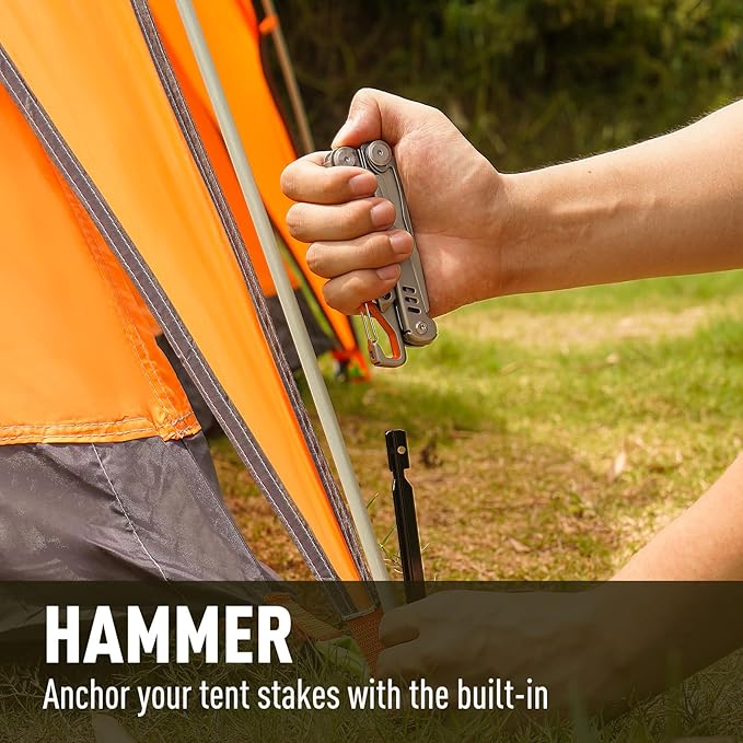 - 【CARABINER DESIGN】The multiherramienta closed size is 4.5 x 1.29 x 0.7 inches, 8.9 oz weight, a lightweight multi-tool knife that can conveniently travel with you on a lanyard ring.