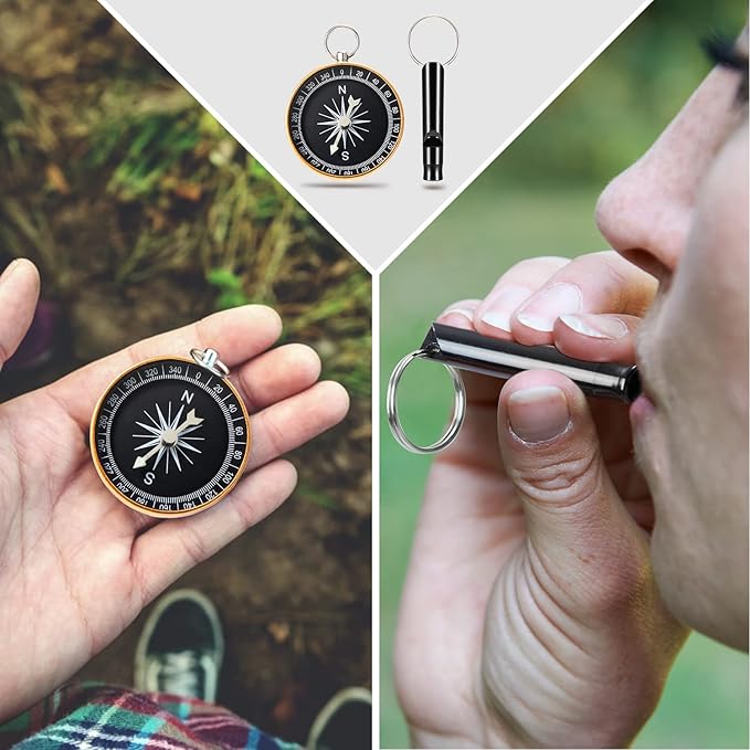 - 3000 Hz Survival Whistle & Precise Compass: Coming with the 2pcs 120 dB whistle, your distress signal can be easily heard by people even during an earthquake. Better yet, the anti-interference compass is stable, highly accurate and reliable enough to guide you to move along the right way