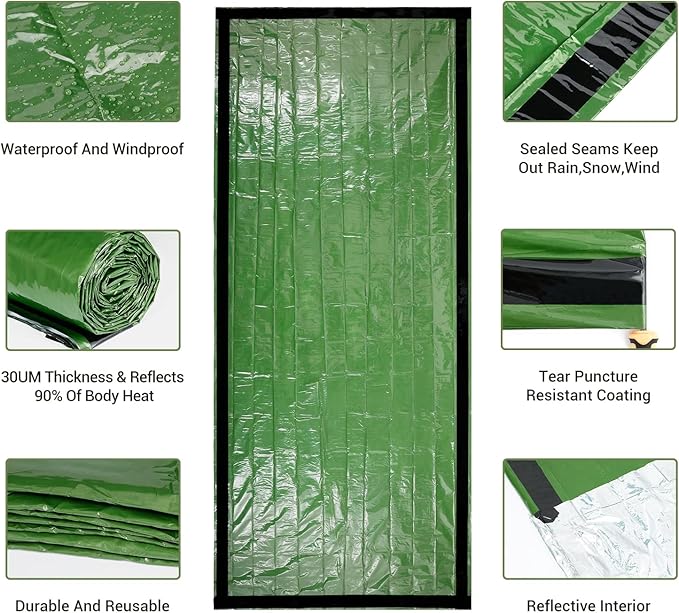 - Sturdy Mylar: The insulating Mylar material is designed by NASA for space exploration. It can reflects 90% of your body heat to keep you warm even under harsh conditions or when your body is weak. It's soft, waterproof, windproof, tear proof and puncture proof. Rain, shine, snow, or something in between- this bivy sack can handle it all