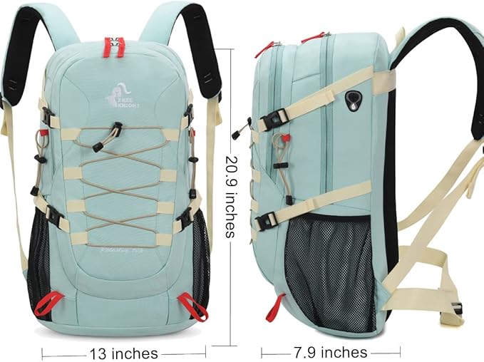 - Multi Compartment :Generous main compartments and multiple pockets allow you to keep all of your gear secure and organized.The spacious main compartment holds sleepingbag, clothes, or other everyday essentials. With one Interior Pouch for water bladder.It also has a front pocket with a zipper. The elastic cord is designed to store items that need to be easily accessible. In addition, it has two side pockets for your water bottle or umbrella.