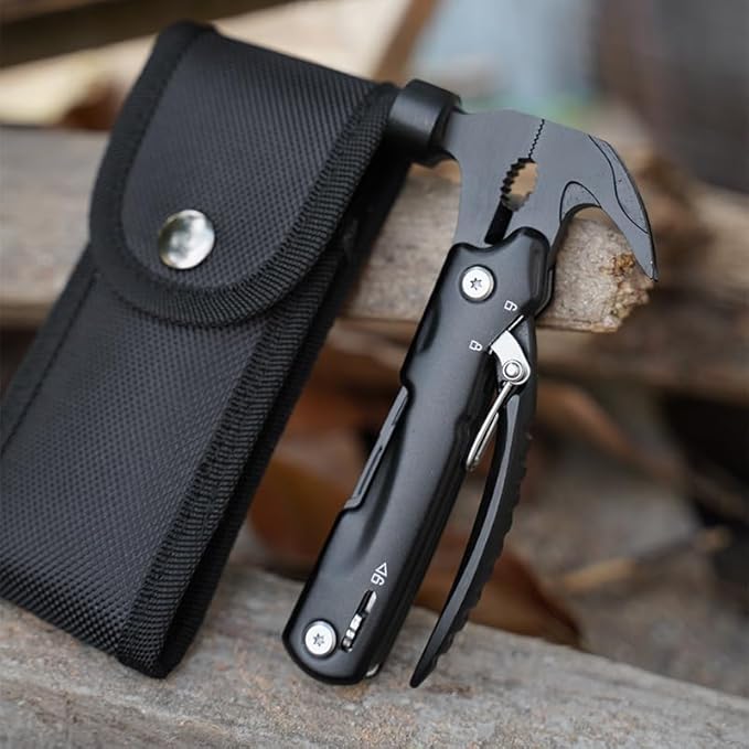 - 【Wide range of application】This outdoor universal hammer is very suitable for camping, fishing, hiking, DIY work and an excellent multi-tool hammer. Can pry, screw, open fire hydrants, saw wood, strong enough to break glass curtain walls, break rope curtain escape in danger.