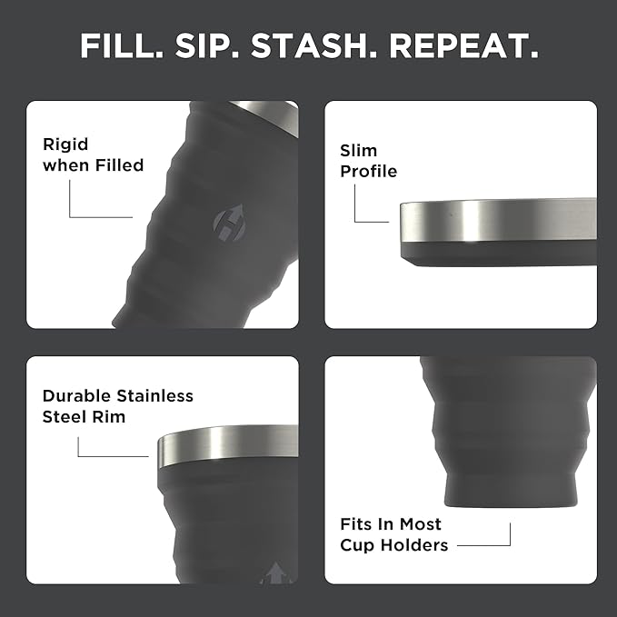 - Reduce Your Impact - HYDAWAY strives every day to lessen the impact of single-use plastic on the planet. With a practical and portable 16 oz camping cup tucked into your bag, you’ll never need a single-use plastic alternative again