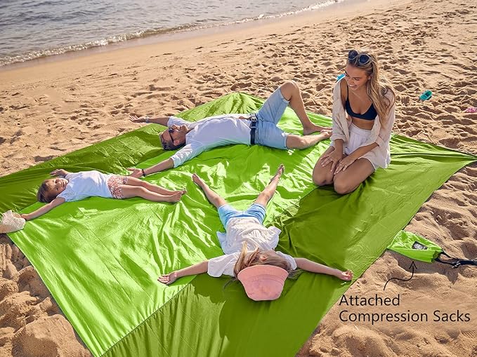 - ✔ SAND PROOF AND WATER RESISTANT-This beautifully colored blanket is made of durable ripstop nylon. Just shake the blanket and it easily gets rid of all the sand once. Not only is this wonderful fabric breathable and light-weight, but watch as water beads up and rolls off. The little water that may stay behind will dry VERY FAST.
