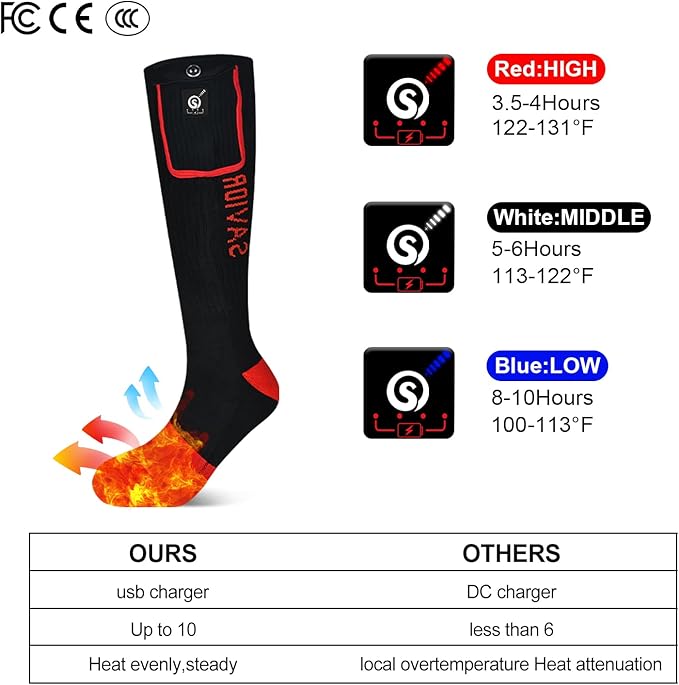 - 🔥 {Multi-purpose}Unisex electric heating socks use high-quality imported materials, warm, breathable and comfortable,Suitable for all kinds of outdoor sports and indoor warmth, especially suitable for skiing, camping, dog walking, motorcycle riding and outdoor work.