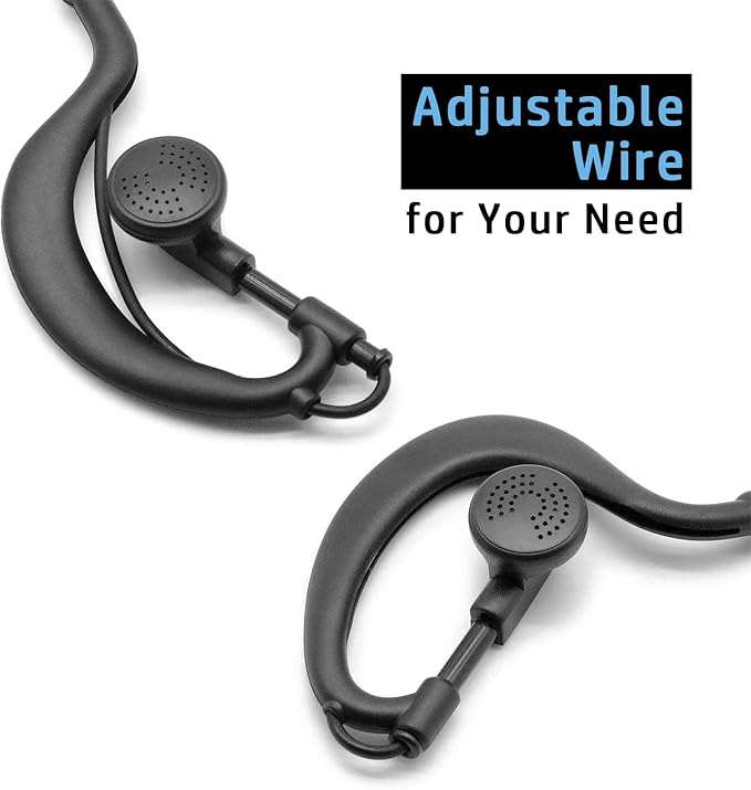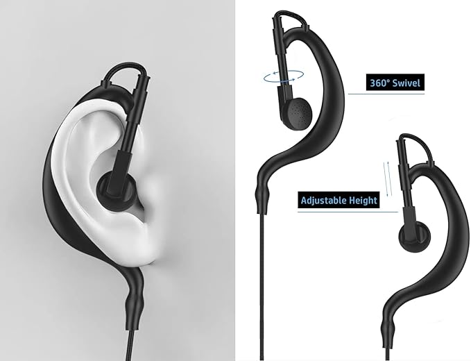 - Made of durable materials: PU cable, metal 2.5mm single pin audio plug, swivel metal collar clip, soft D or G type ear hanger