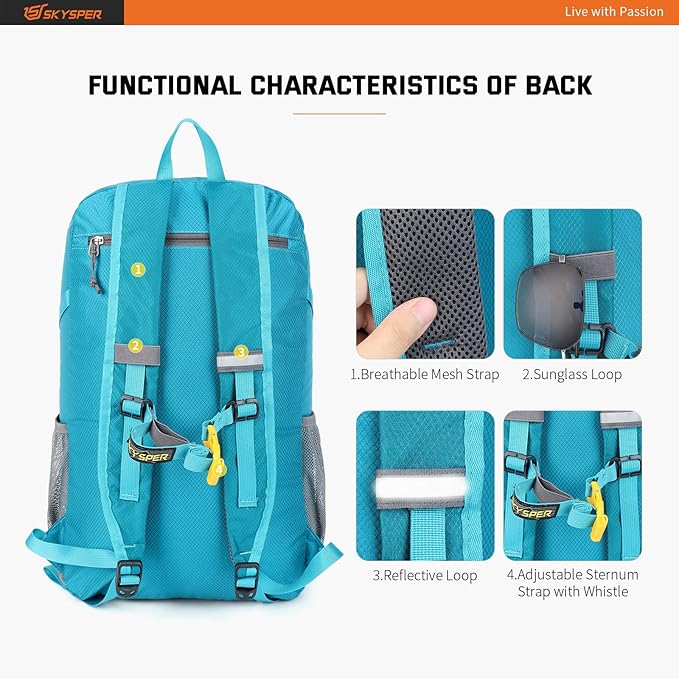 SKYSPER Lightweight Packable Backpack - 30L Hiking Daypack with Wet Pocket Foldable Travel Carry-on Backpack for Women Men