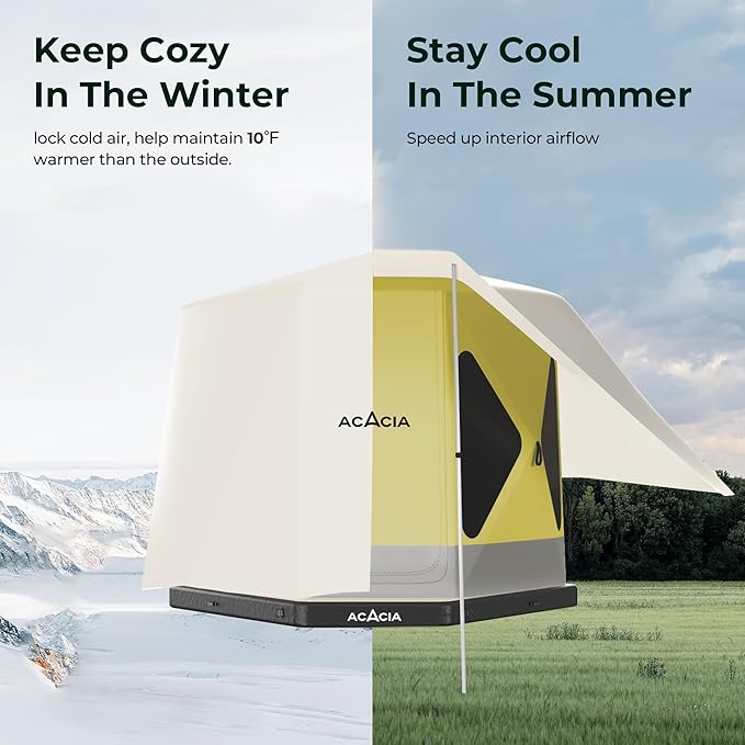 - All SEASON COMFORT: Generously sized canopy casts expansive cooling shade in summer, allowing hot air to pass through the tent and exit via the canopy, ensuring you stay cool in the heat. It acts as an extra insulation layer in winter, effectively raising the interior temperature by 10°F compared to the outside.