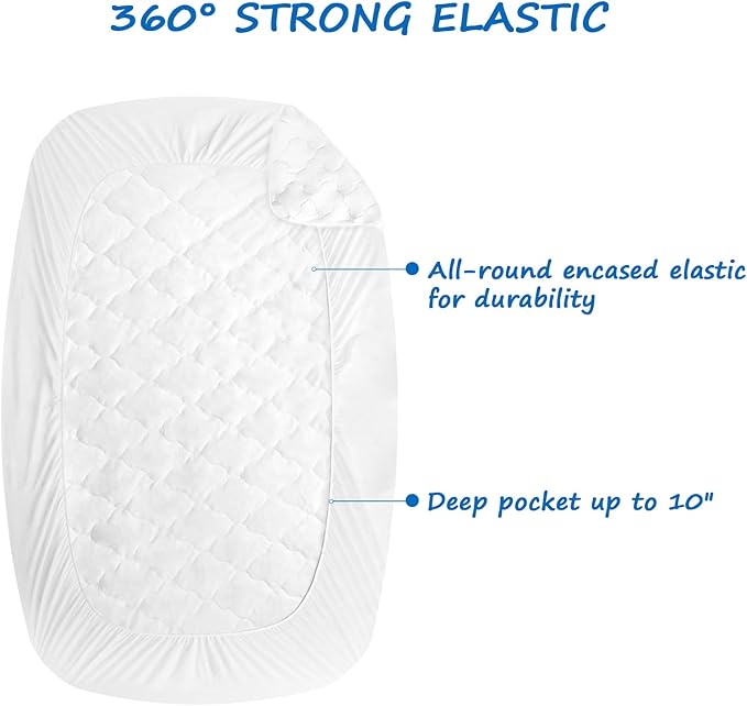 - Stretchable: Each quilted cot mattress cover comes with an elastic band encased at the bottom ensures a tight, secure fit that won’t ride up or move around in middle of the night, staying smooth and snug.