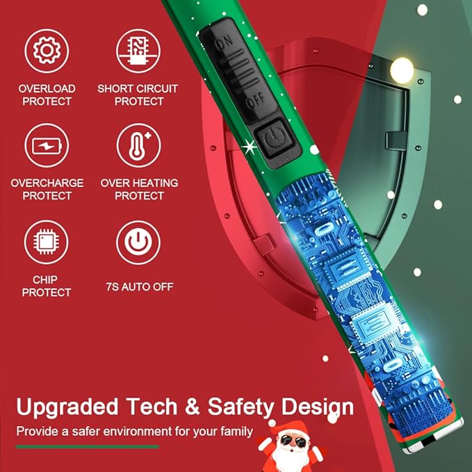 - 【Safety Protection Design】The candle lighter built-in automatic power-off chip protection and external safety lock switch can effectively increased safety. Designed with child safety in mind, you have to push the safety lock switch first, then press the ignition switch to work. The igniting spark will auto stop beyond 7 seconds per igniting. Restart the switch, the igniting spark will be re-ignited.