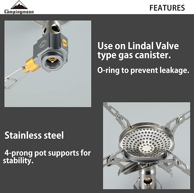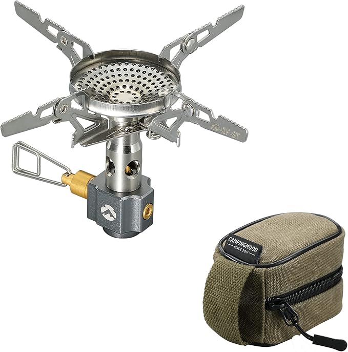 - This CAMPINGMOON's backpacking gas stove XD-2-NE is lightweight & foldable & compact. You can fold this backpacking stove's pot support and remove it from the stove body, and put it into attached storage bag.