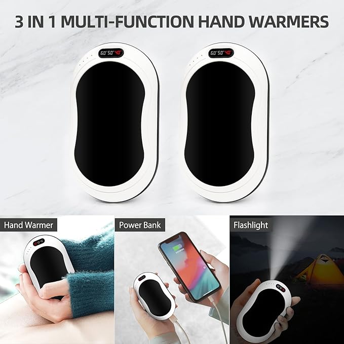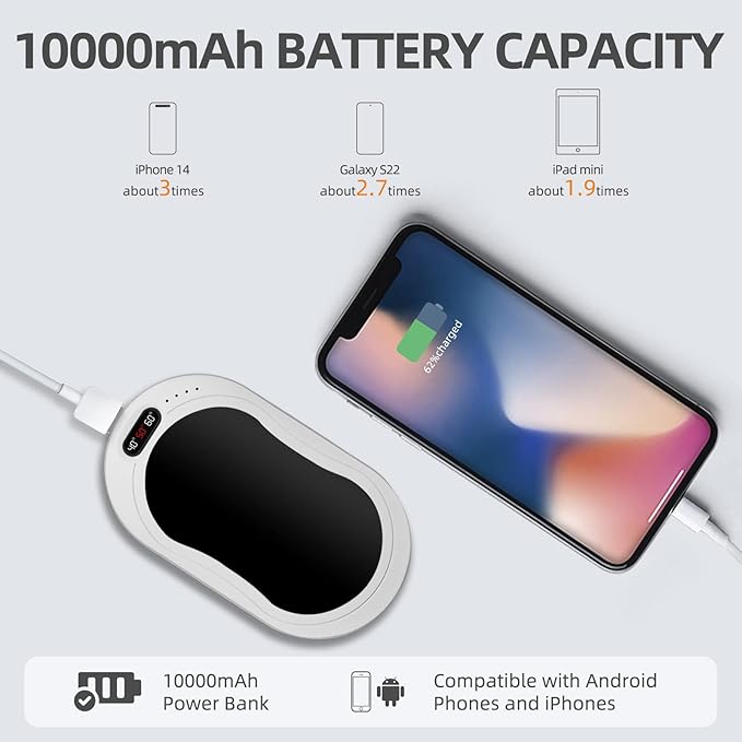 - LONG-LASTING BATTERY POWER: Equipped with a 10,000mAh lithium rechargeable battery and a convenient USB charging port, you can enjoy up to 12 hours of hand-warming and keep your electronic devices charged even when you move.