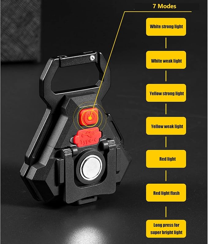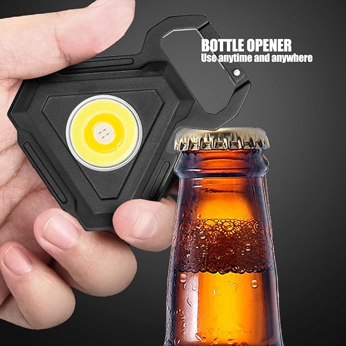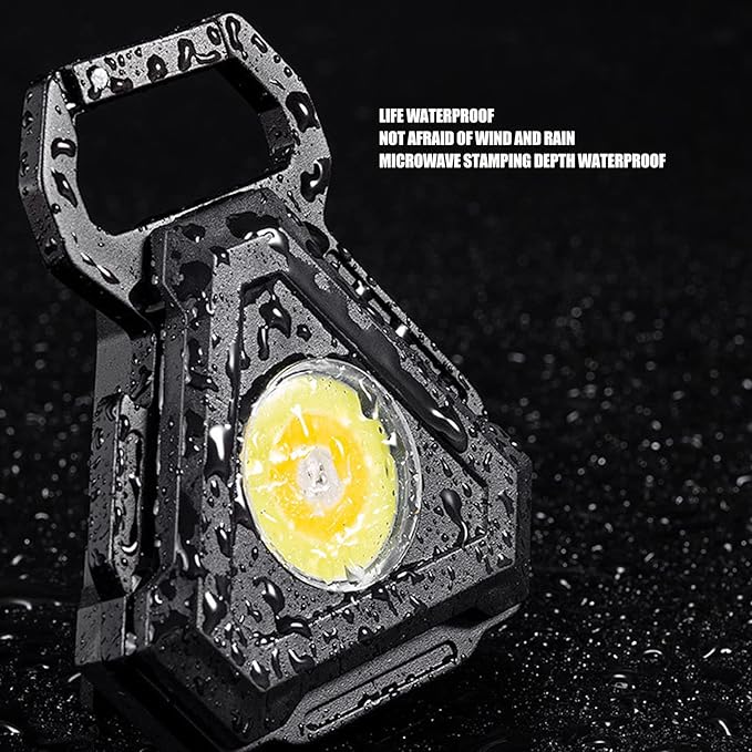 - BRIGHT COB LIGHT: This keychain flashlight can emit 500lumens lights at maximum. Our portable COB work light emmits flood beam which can light up big area, The large COB Technical LED allows this light to be used as a small work light and emergency light.