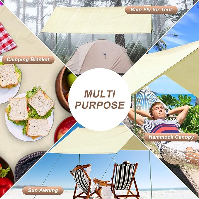 - 【Multi-Purpose】P1ENCAMP camping tent tarp can be used as a picnic blanket,sun shelter,hammock rain fly,groundsheet& tent rain cover.Not only does it provide shade, but it also isolates wet ground and keeps it dry and hygienic.Suitable for use in multiple scenarios, such as hiking, camping, courtyards, picnics and family outdoor activities